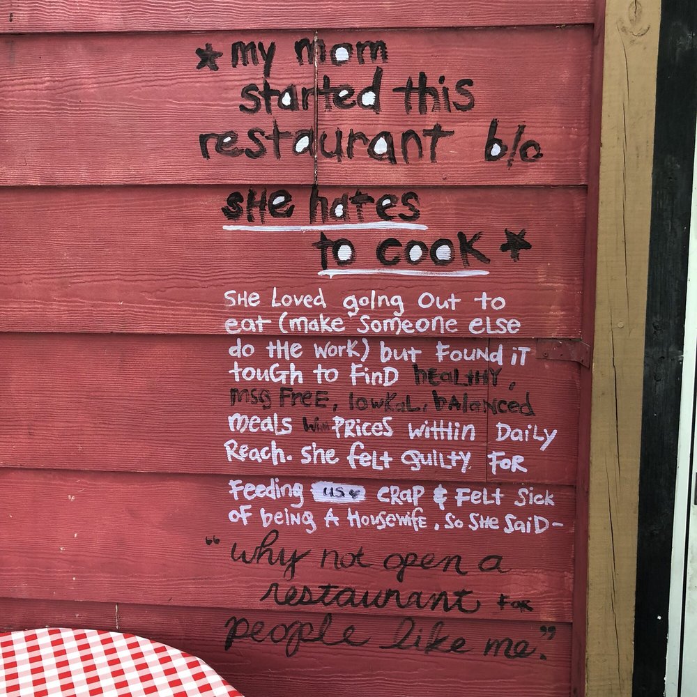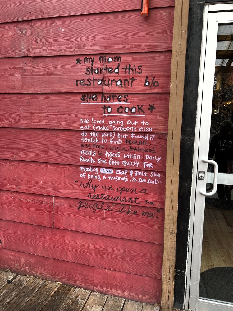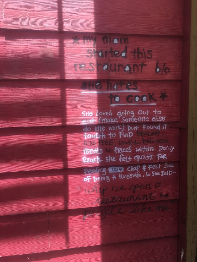 A Thai inspired green papaya salad on a bed of spring greens and carrots, with pickled ginger and crushed serrano chili paste, topped with toasted garlic. Served with a side of rice. Squeeze lime on top and enjoy!