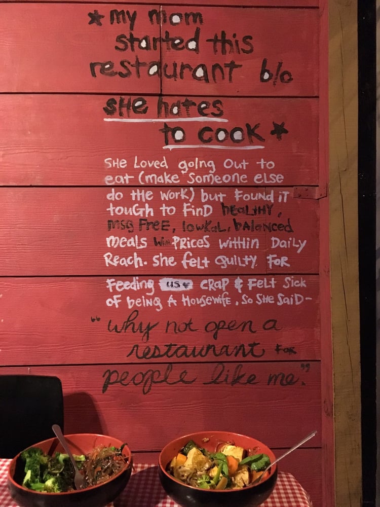Sauteed green cabbage, mushrooms and rice cakes served on a bed of fresh spring greens and julienned green cabbage, and topped off with a pile of sweet potato noodles.